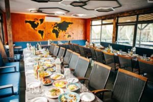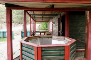 Справжнє задоволення подарує лазня з каміном на дровах! Всі елементи лазні виконані з натуральних матеріалів і відрізняються своєю екологічністю. У лазні Ви зможете повністю розслабитися і відпочити. Крім того Гостям комплексу доступний чан на відкритому повітрі! Баня допоможе оздоровити організм, вивести всі шкідливі мікроелементи і поліпшити стан шкіри. Після лазні Ви зможете скуштувати смачні страви з ресторану, насолодитися природою і приготувати смачне м’ясо на мангалі.